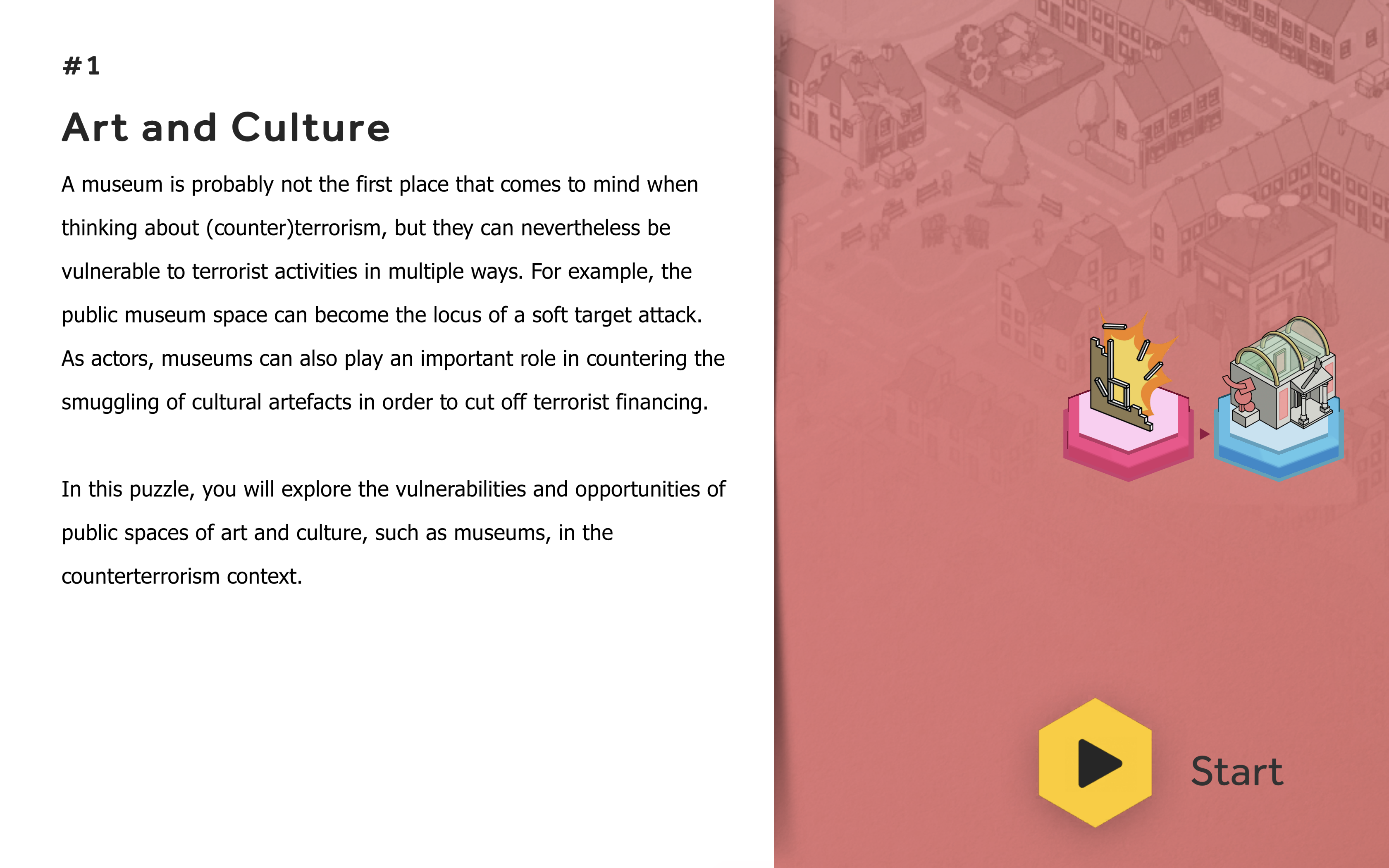 Voor het Global Counter Terrorism Forum hebben we ter gelegenheid van het 10 jarig bestaan een serious game gemaakt. De uitdaging hier was om een ‘leuke’ game te maken, maar wel een game die over serieuze inhoud gaat. In opdracht van en in samenwerking met het Asser instituut, hebben we een heel gaaf puzzelspel weten te maken. Dat het verhaal de missie en visie van de GCTF vertelt. We hebben hierbij alle eerdere animaties en infographics weten te verwerken in de game. Het bijzondere is dat als je wilt, dan kun je heel erg veel diepgang vinden, maar als je gewoon even wilt spelen dan kan dat ook!